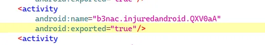 <activity android:name="b3nac.injuredandroid.b25lActivity" android:exported="true"/>